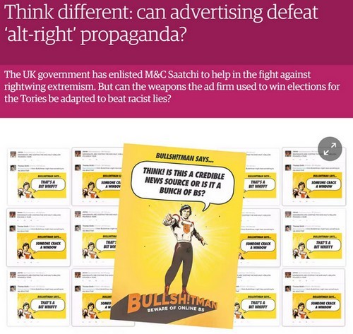 Brittiläinen The Guardian -lehti kertoo, että ”äärioikeistolaisen suvaitsemattomuuden ja valheellisen tiedon takia Theresa Mayn hallitus aikoo taistella vastaan” ja on palkannut mainosfirma M&C Saatchin osana 60 miljoonan punnan hallitusprojektia äärioikeistoa ja ”vaihtoehtoista oikeistoa” alt-rightia vastaan.