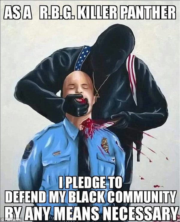 Tämä vaikuttaa olevan paitsi Facebookin myös Yhdysvaltojen poliittisen eliitin virallinen linja. Mustat pantterit ovat nimittäin järjestäneet amerikkalaisissa kaupungeissa täysin avoimesti ja vapaasti aseellisia mielenosoituksia, joissa on vaadittu valkoisten murhaamista.