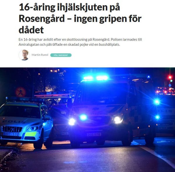 Määrätietoisesti ajamalla tuhoisaa ja vastuutonta maahanmuuttopolitiikkaa viimeiset 40 vuotta ovat erinäiset poliitikot onnistuneet muuttamaan Ruotsin kolme suurkaupunkia säännönmukaisesti sotatoimialueiksi, joissa päivät ilman teloituksia ovat yhä harvinaisempia: Malmö. Göteborg. Tukholma.