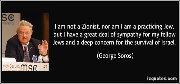 Vaikka Israel on perustettu täysin laittomasti ei-juutalaisilta ryövätylle alueelle, ei Soros ole kyseenalaistanut juutalaisvaltion olemassaolon oikeutusta [4]. Sen sijaan hän on antanut rahaa hankkeille, jotka puhdistavat kansainvälisen juutalaisyhteisön imagoa, jonka Israelin röyhkeimmät sotarikokset ovat tahrineet.