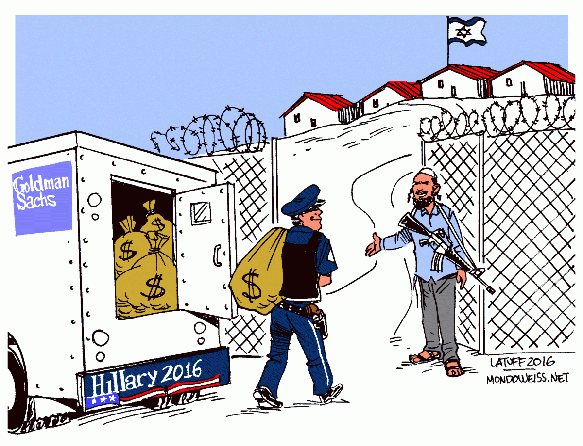 Gaddafin murhasta kaiken kunnian ottanut Clinton on tunnettu paitsi yhteyksistään Israeliin myös Wall Streetin juutalaisiin pankkeihin, erityisesti Goldman Sachsiin.