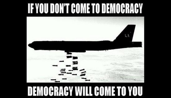 Yhdysvallat ja sen liittolaiset Kokoomuksen Kimmo Sasista lähtien kutsuvat sionistisia sotia mielellään ”demokratian” levittämiseksi takapajuisiin arabimaihin. Jopa Yleisradio joutui viimein myöntämään, että tuorein demokratiaprojekti epäonnistui jälleen verisesti.