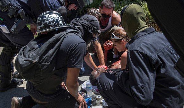 LA Timeskin joutui myöntämään, ettei oikeamielisten hyökkäys mennyt lopulta putkeen: ”Vajaa 30-vuotias musta vastamielenosoittaja kouristeli maassa. Hänen vatsansa ja rintakehänsä olivat täynnä pistohaavoja. Hän oli pelkkää veristä mössöä. Kymmenet vastamielenosoittajat saivat vammoja ja joutuivat hoitoon.”