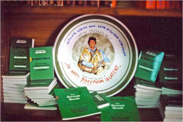 Vuonna 1975 Gaddafi julkaisi Vihreänä kirjana tunnetun al-Kitāb al-Aḫḍar –teoksen. Kirja käsittelee muun muassa poliittista teoriaa sekä taloutta. Gaddafi osoittaa, että sekä kapitalismi että kommunismi ovat haitaksi yhteiskunnalle, minkä vuoksi tarvitsemme kolmannen vaihtoehdon.