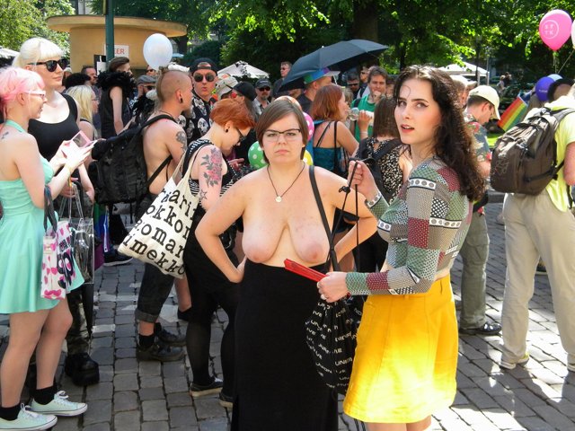 Mielenosoitus on herättänyt vastalauseita, sillä puolialastomien ja sadomasokistiasuihin pukeutuneiden aktivistien sekaan oli raahattu myös pieniä lapsia kulttuurimarxistisen aatteen toteemeiksi.