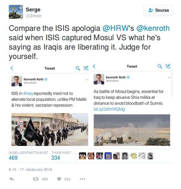 Valtamedian Aleppo-aiheinen propagandaryöppy osui yhteen Amerikan tukeman Mosulin operaation kanssa, mikä ei ole sattumaa. Amerikka hyökkää liittolaisineen Mosulia miehittäviä ääri-islamisteja vastaan nyt kolmesta ilmansuunnasta.