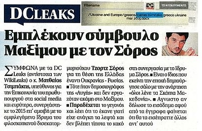 Pääministeri Aléxis Tsíprasin neuvonantaja Matthaios Tsimitakis on työskennellyt Sorosin Open Society –järjestön propagandakoneistossa. Tsimitakis on ammatiltaan toimittaja.