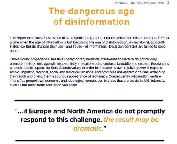 CEPA maalaa eurooppalaisille dramaattiset seuraukset, mikäli Eurooppa ja Pohjois-Amerikka eivät oikealla tavalla vastaa Venäjän valtion sponsoroiman propagandan vaaralliseen haasteeseen.