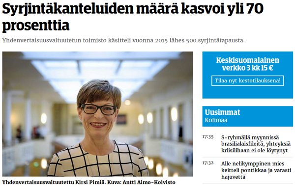 – Välitämme vakavaa vihapuhetta sisältävät viestit puolueille tiedoksi ja heidän toimenpiteitään varten. Jos kyse on lainvastaisesta häirinnästä tai mahdollisesti rikoksesta, asia otetaan toimistossamme käsittelyyn tai siitä ilmoitetaan poliisille tai syyttäjälle, Pimiä kertoo.